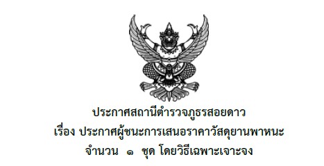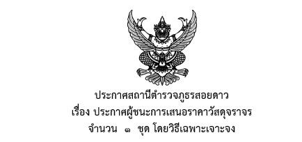 ประกาศสถานีตำรวจภูธรสอยดาว เรื่อง ประกาศผู้ชนะการเสนอราคาวัสดุและครุภัณฑ์สำนักงาน จำนวน ๑ ชุด โดยวิธีเฉพาะเจาะจง