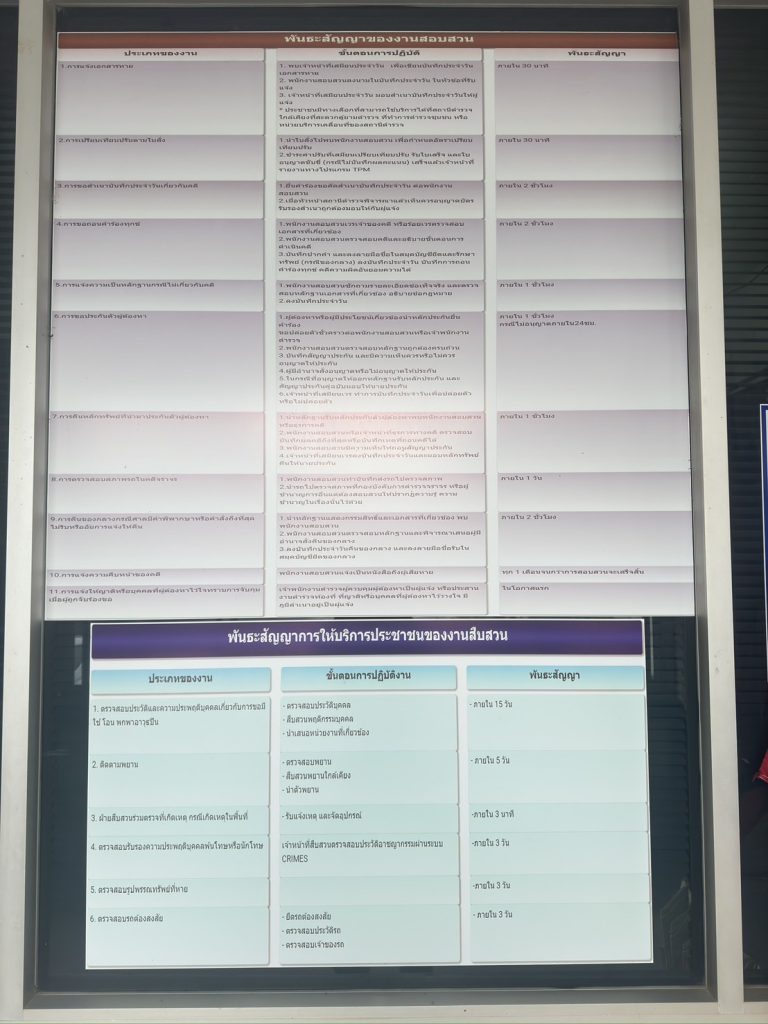 – ใช้เทคโนโลยีระบบ CRIMES ในการดำเนินการบริการในด้านต่างๆเช่น แจ้งเอกสารหาย ขอคัดสำเนา ประจำวัน ด้วยการใช้บัตรประชาชนใบเดียว – ป้ายประชาสัมพันธ์จุดบริการ